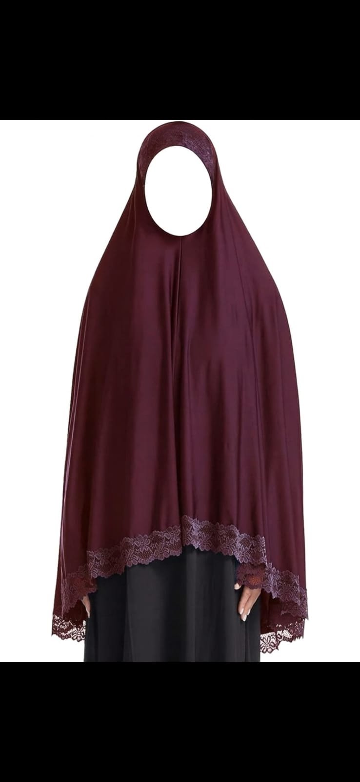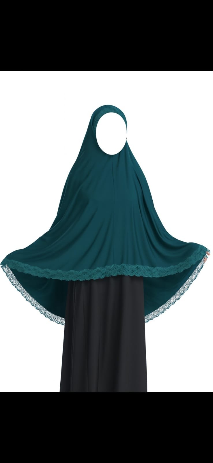 The delicate lace border adds a feminine and elegant touch, making it suitable for both everyday wear and special occasions. Whether you’re heading to work, attending gatherings, or performing prayers, this khimar offers modest coverage without compromising on style.