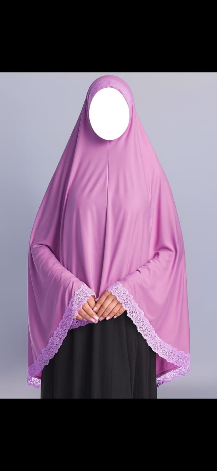 Enhance your modest wardrobe with our Elegant Lace Trim Khimar Hijab (Size 42) — a beautiful combination of comfort, coverage, and sophistication. Crafted from high-quality, soft fabric, this khimar drapes effortlessly, giving a graceful silhouette while ensuring all-day comfort.