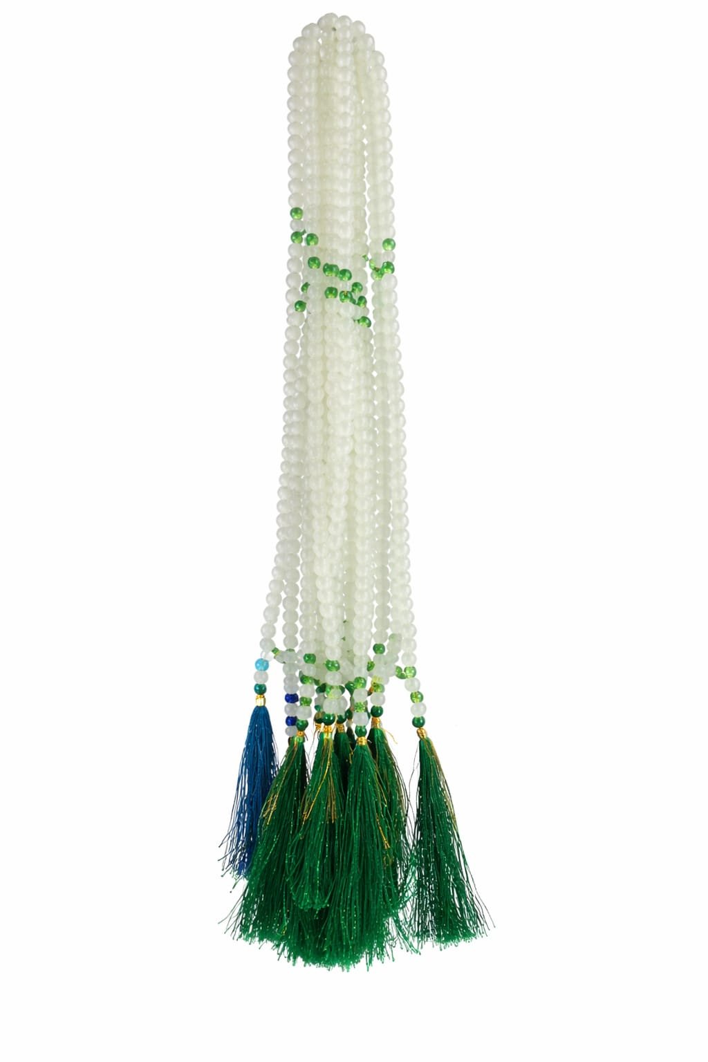 Beautiful white tasbih accented with green beads and rich green tassels. Perfect for prayer, zikr, and religious use.
